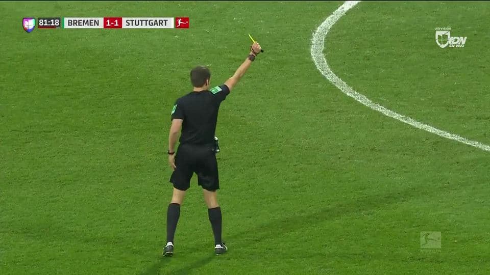 Tarjeta amarilla. El árbitro amonesta a Ron-Robert Zieler de VfB Stuttgart