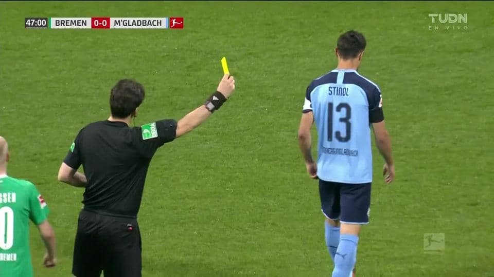 Tarjeta amarilla. El árbitro amonesta a Tony Jantschke de Borussia Mönchengladbach on May 26, 2020