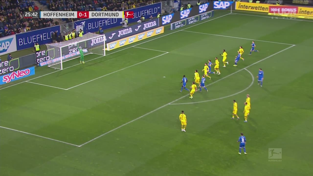 El Borussia Dortmund se salva del empate tras disparo potente del defensor del Hoffenheim.