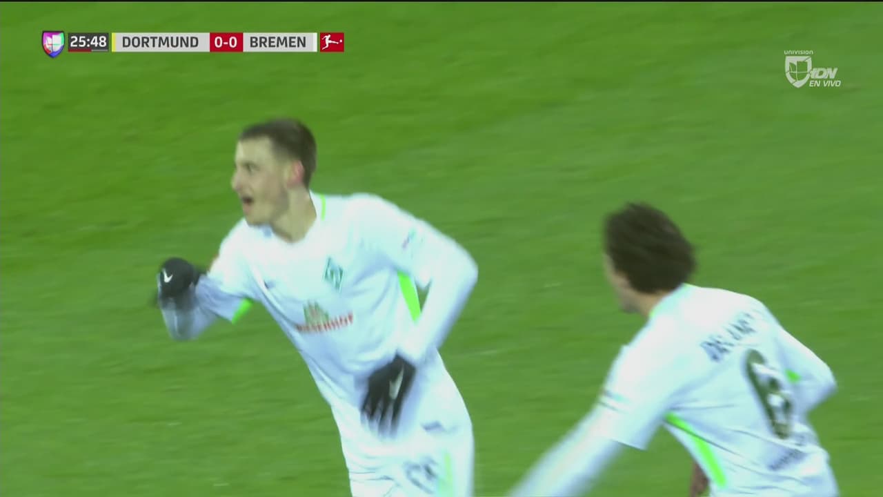 El Werden Bremen tomaría la ventaja con el gol de Maximilian Eggestein, el volante recibiría a las afueras del área y pondría la bola al fondo de las redes con un tiro cruzado lejos del lance del portero.