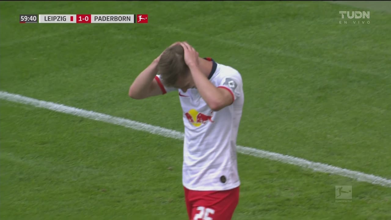 Dani Olmo tomó un rebote tras un tiro de esquina, no se la pensó dos veces para meter un disparo cruzado y abajo, que el arquero del Paderborn sacó al 59’.