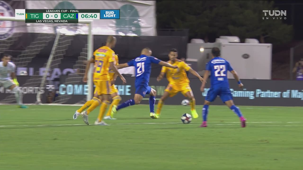 Jonathan dispara con potencia y el portero de Tigres devuelve con los puños.