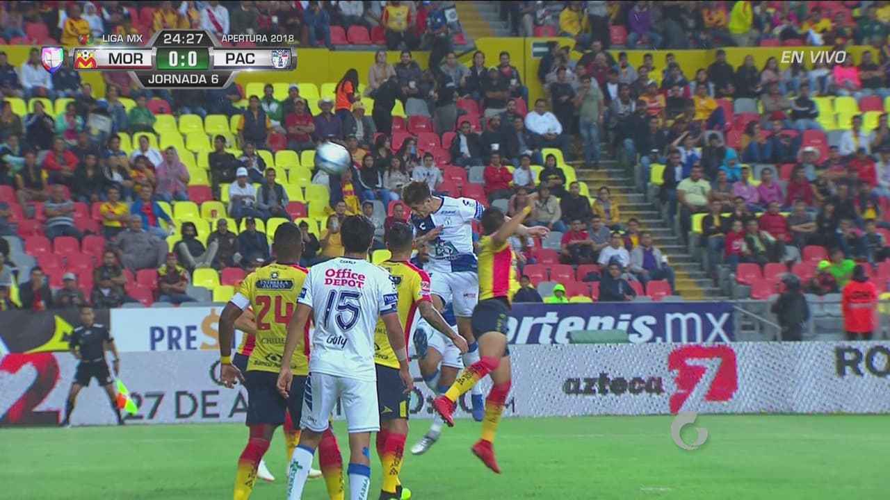 El ariete chileno se elevó más que nadie en el área pero mandó desviado su testarazo a servicio de Jara. Morelia vuelve a librar el primer tanto en contra.