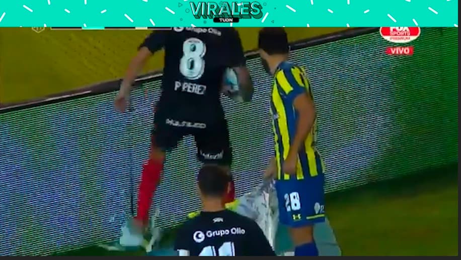 En el juego entre Rosario y Newell's un dron con los colores canallas sobrevoló la cancha; Pablo Pérez lo pateó y le dio un balonazo.