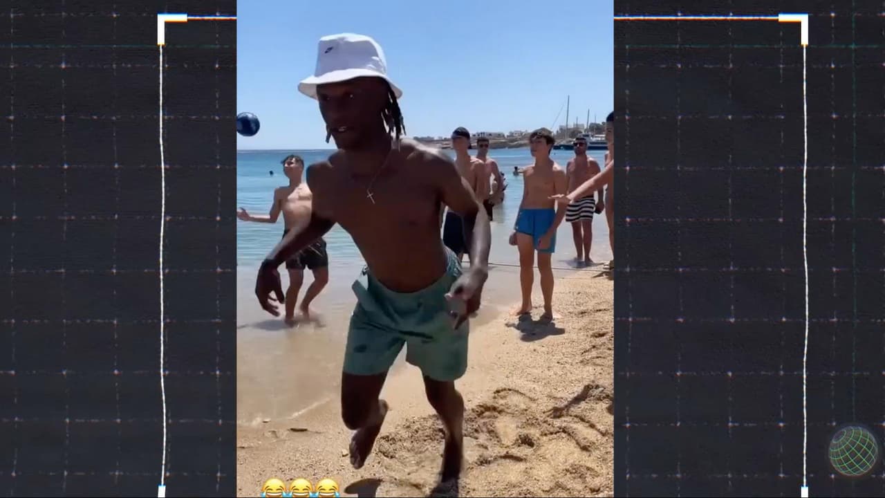 El jugador francés del Real Madrid estaba en la playa haciendo dominadas con unos pequeños y terminó recibiendo un pelotazo.