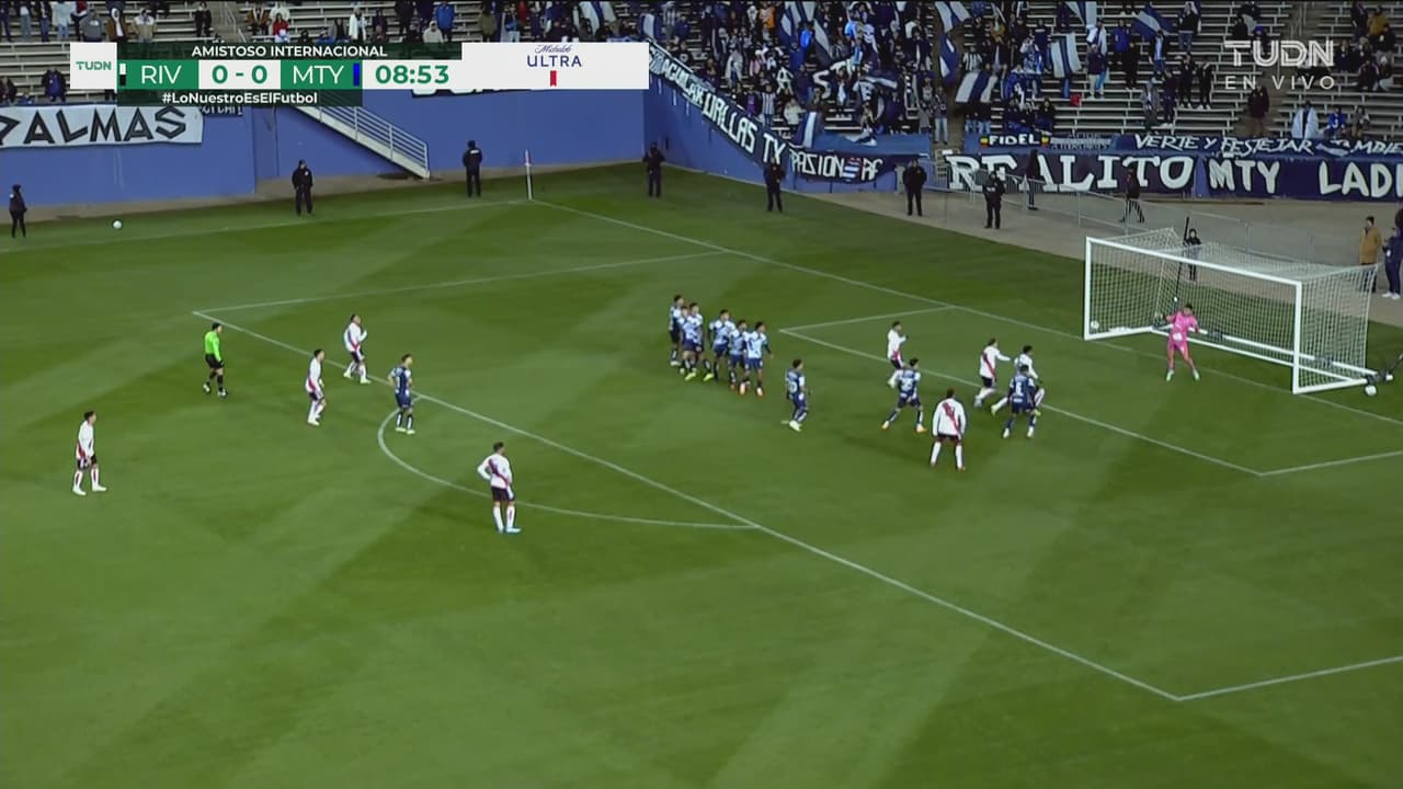 River Plate tuvo la primera ocasión de gol en el partido con un tiro libre de Ezequiel que atajó de buen modo el arquero de Rayados.