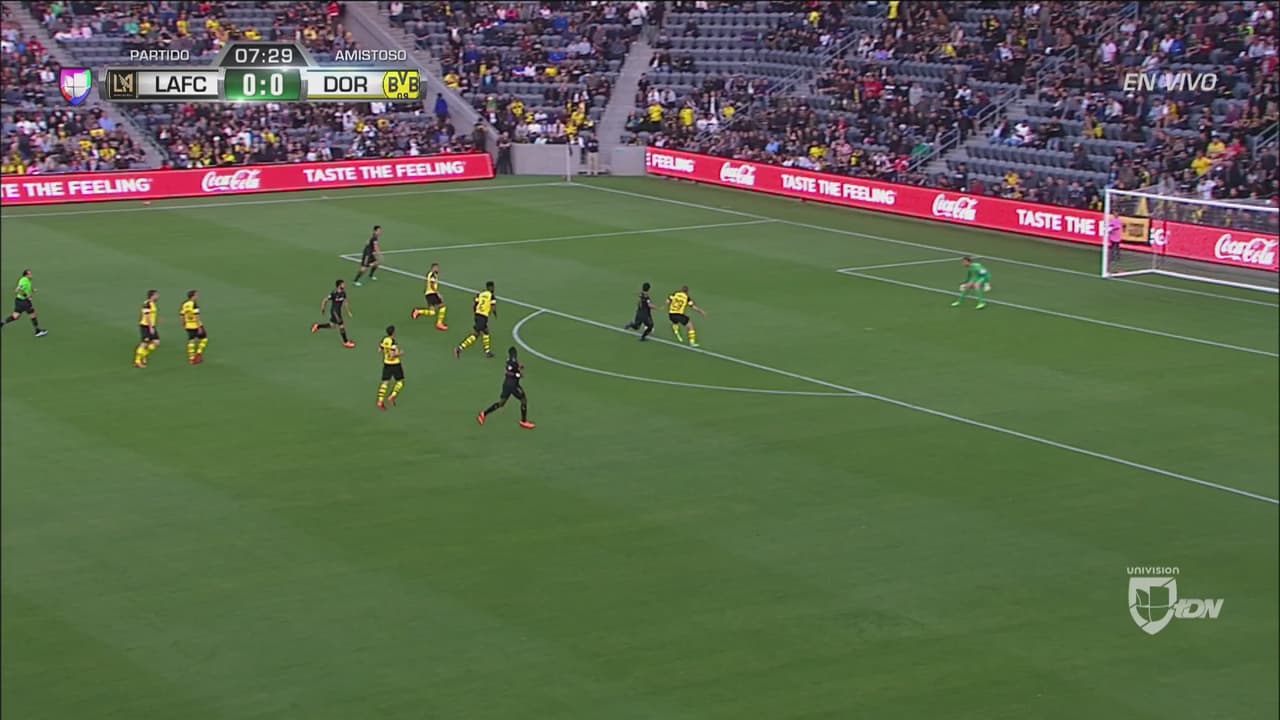 Carlos Vela por poco rompe el cero ante el Dortmund