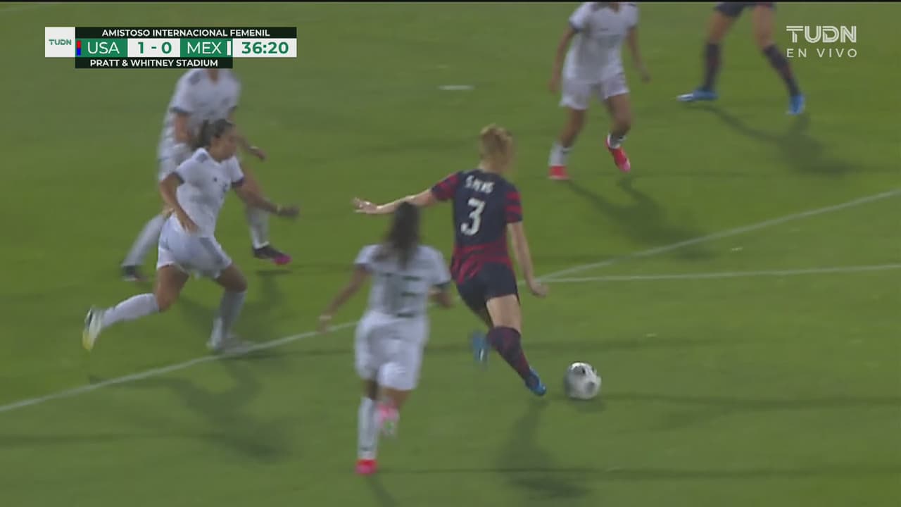 Otra vez fue Rapinoe quien dio el pase para un remate peligroso a los 36 minutos.