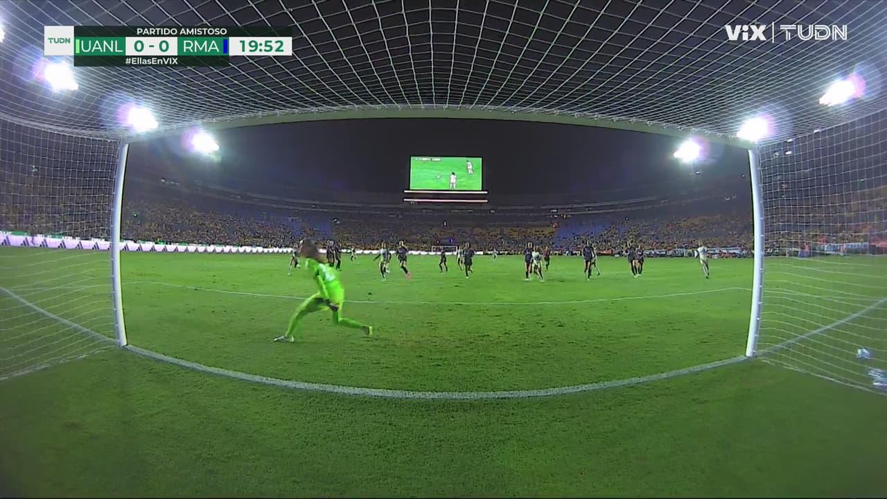 La Maga estuvo cerca de abrir el marcador para las felinas con un potente tiro libre que le faltó cerrar.