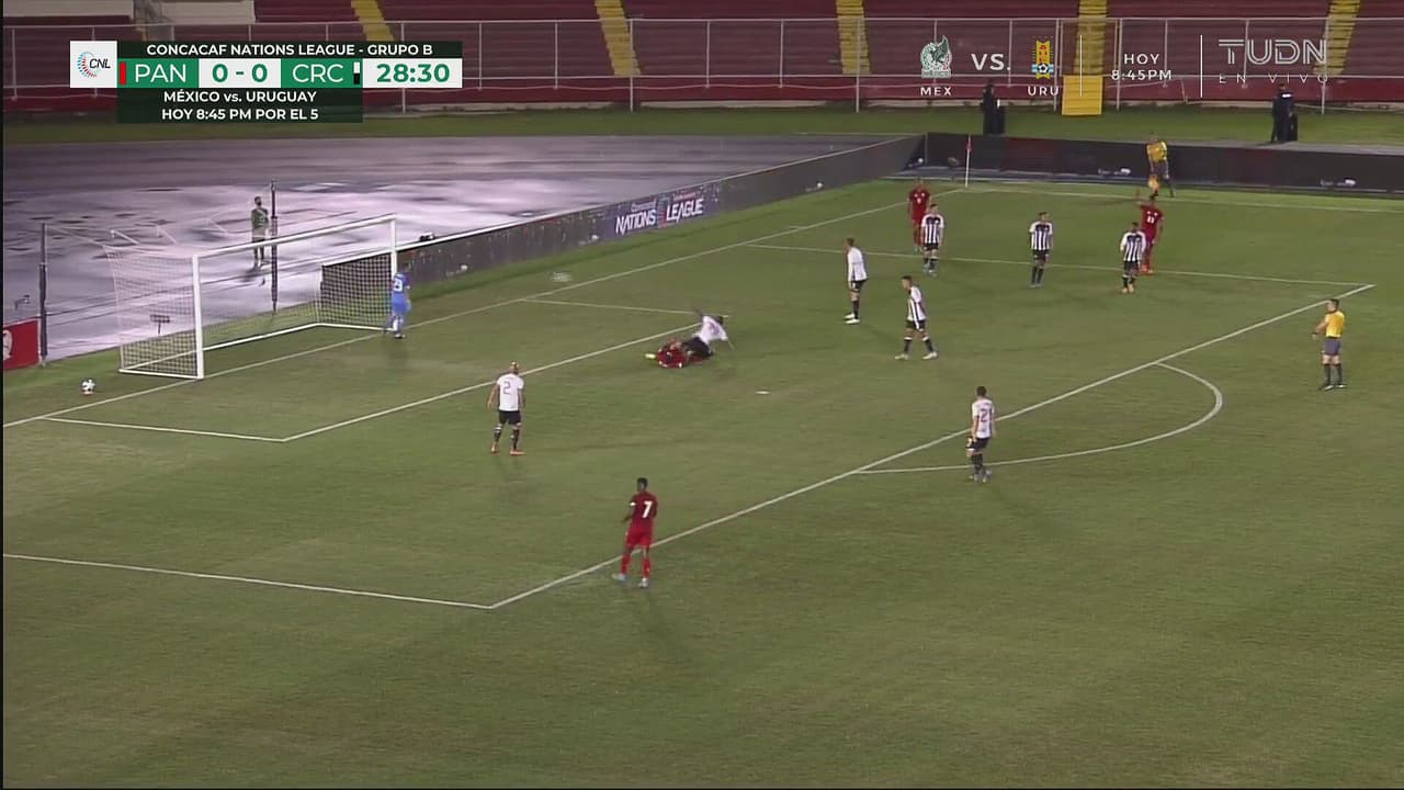 El delantero de Panamá se anticipó a Waston, impactó casi barriéndose y su envío se fue apenas a un lado.