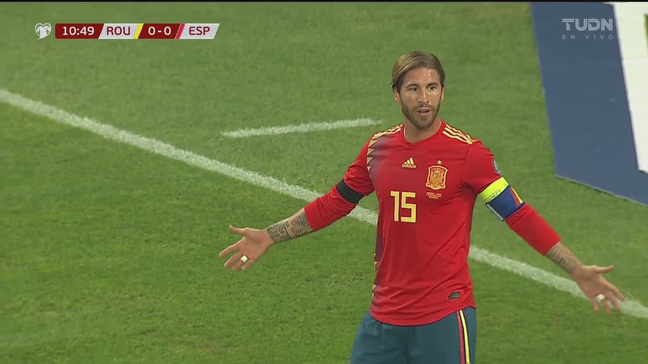 Esta vez llegó Jordi Alba para rematar de volea y con el pie sacó el peligro el arquero rumano.