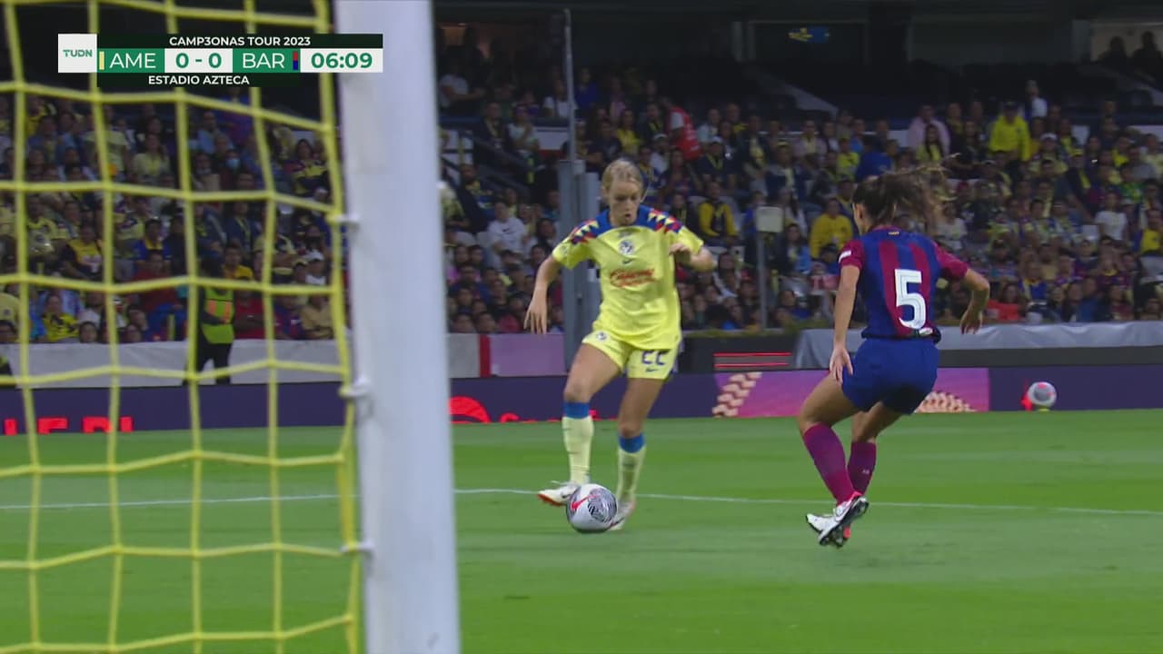 El conjunto del América tuvo la primera de peligro en el partido, pero Sarah le pegó desviado.