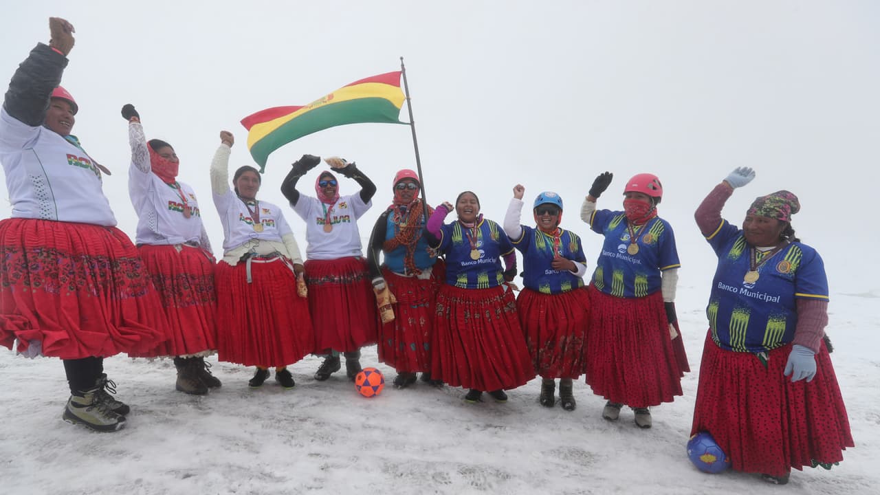 A 5 mil metros de altitud las cholitas escaladoras bolivianas desafiaron la nieve, la intensa neblina y el frío para jugar un partido de futbol cerca a la cima del imponente Huayna Potosí, de 6 mil 88 metros de altura, y demostrar que "sí se puede".