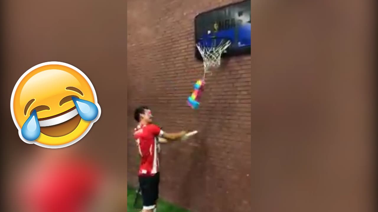 El habilidoso mexicano hizo el oso al intentar romper una piñata que conmemoraba su cumpleaños