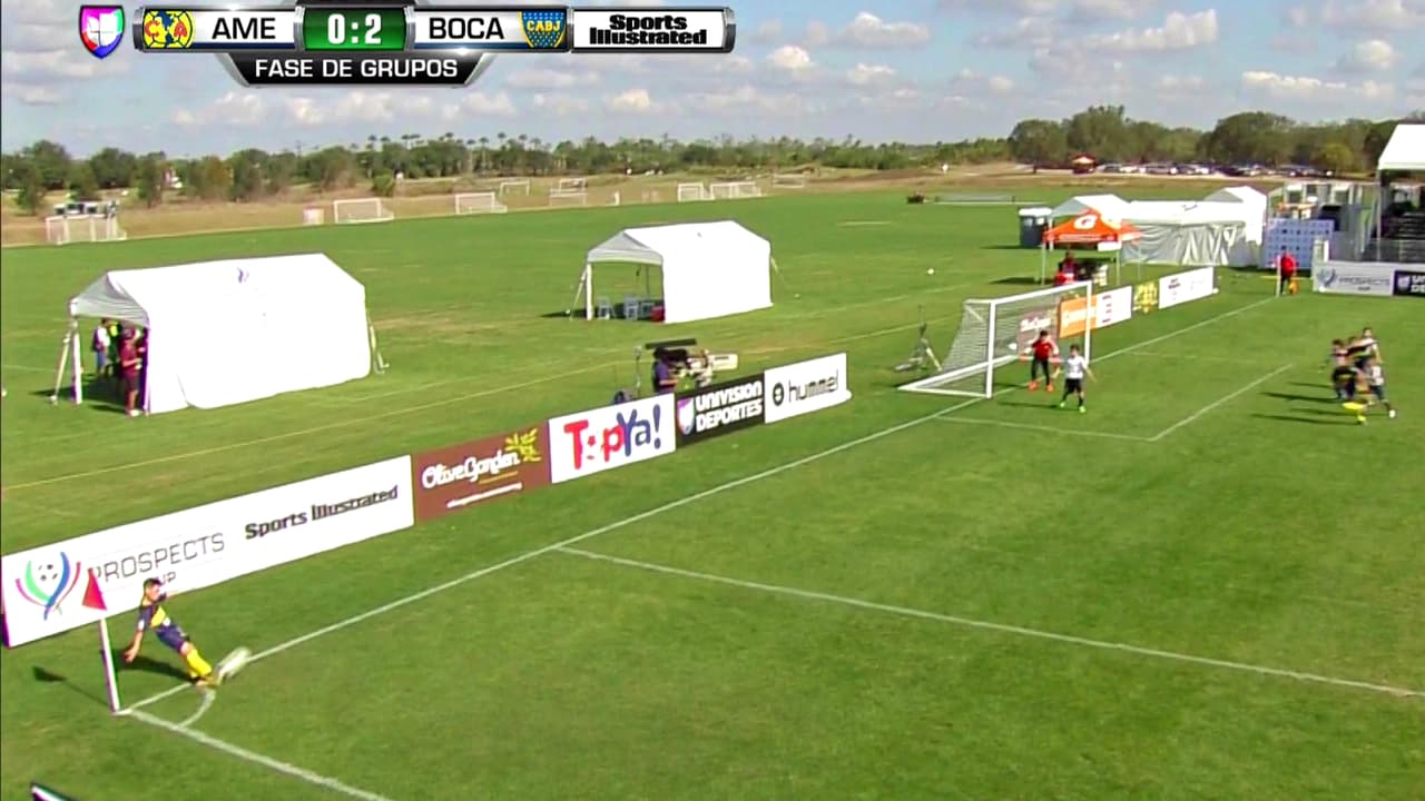 En la Prospect Cup 2017, este pequeño, número 10 del club de Argentina, homenajeó la pegada con comba de la estrella xeneize al marcar desde la esquina en el juego contra las Águilas. Aquí el talento.