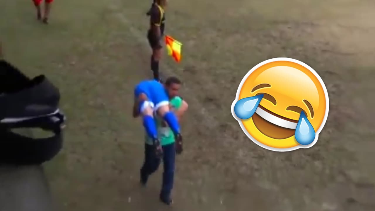 Durante un partido del campeonato Amazonense Sub-17, este futbolista se lesionó en una pierna y, a falta fe camillas, lo tuvieron que sacar alzado sus compañeros y un miembro del cuerpo técnico.