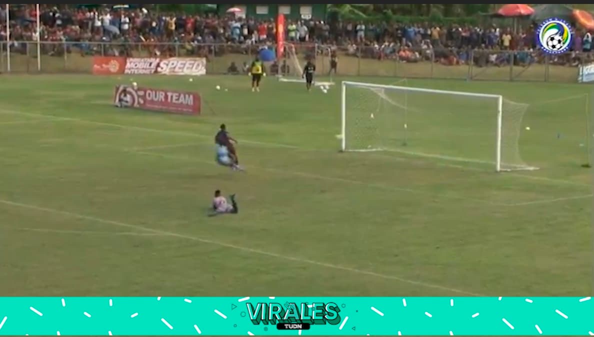 Raynick Laeta, de Islas Salomón, marcó pero antes de poder celebrar recibió una patada terrible, pero aún así se levantó como si nada.