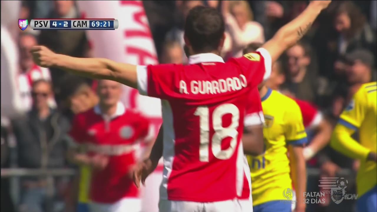 Los mexicanos Andrés Guardado y Héctor Moreno jugaron los 90 minutos en la victoria del PSV ante Cambuur por 6-2, con lo cual empataron con 81 puntos con el Ajax, quien se mantiene con el liderato en la Eredivisie.