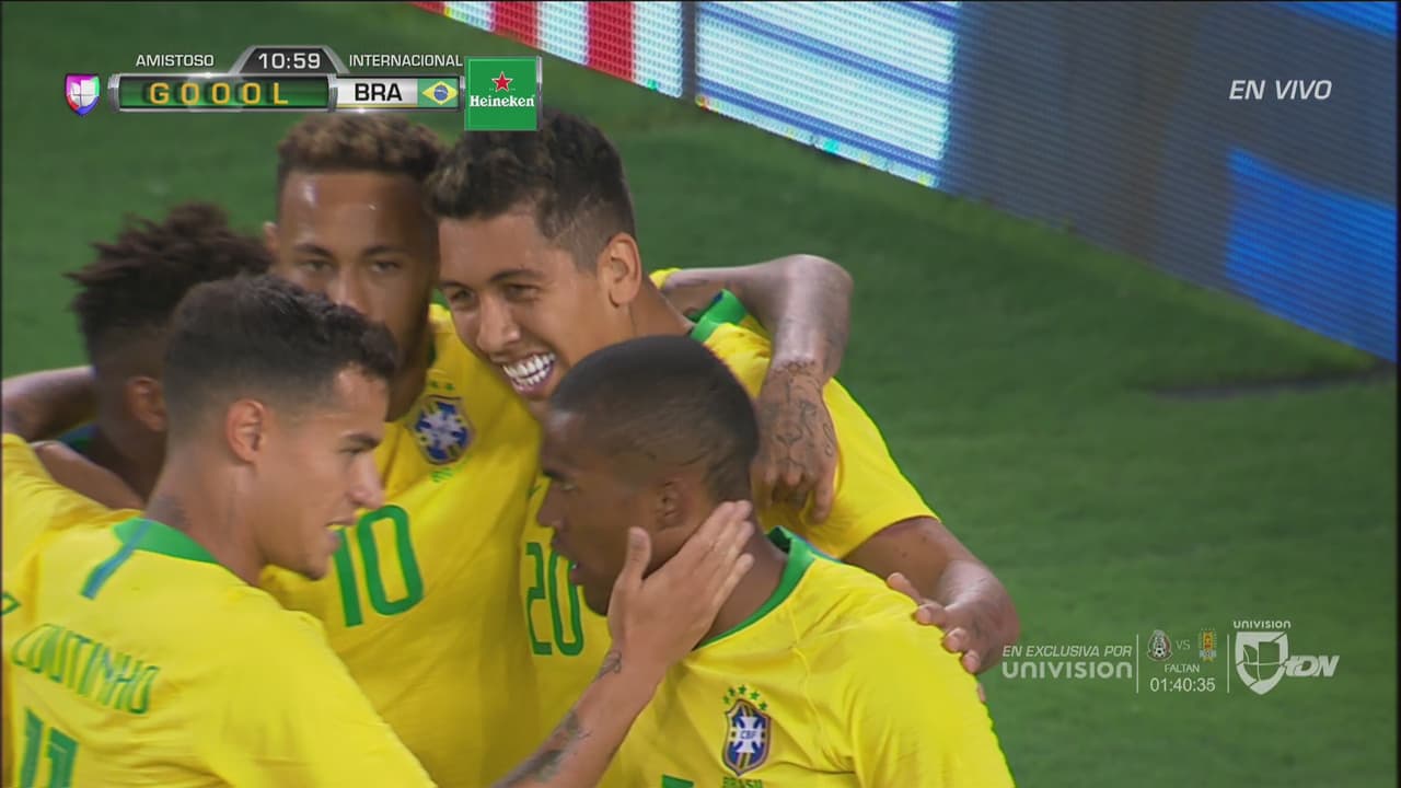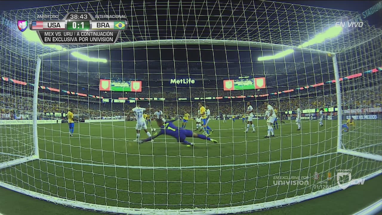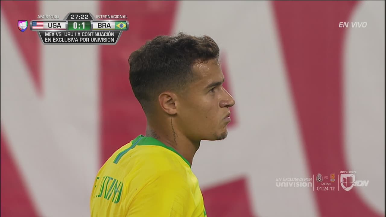 Apenas un par de minutos se registraban en el cronómetro y Neymar buscaba abrir el marcador penetrando por la banda izquierda; pero no fue sino hasta los 11 minutos del partido, en una jugada iniciada por de Douglas Costa, que la 'Canarinha' se puso en ventaja ante la carente marca del equipo estadounidense.