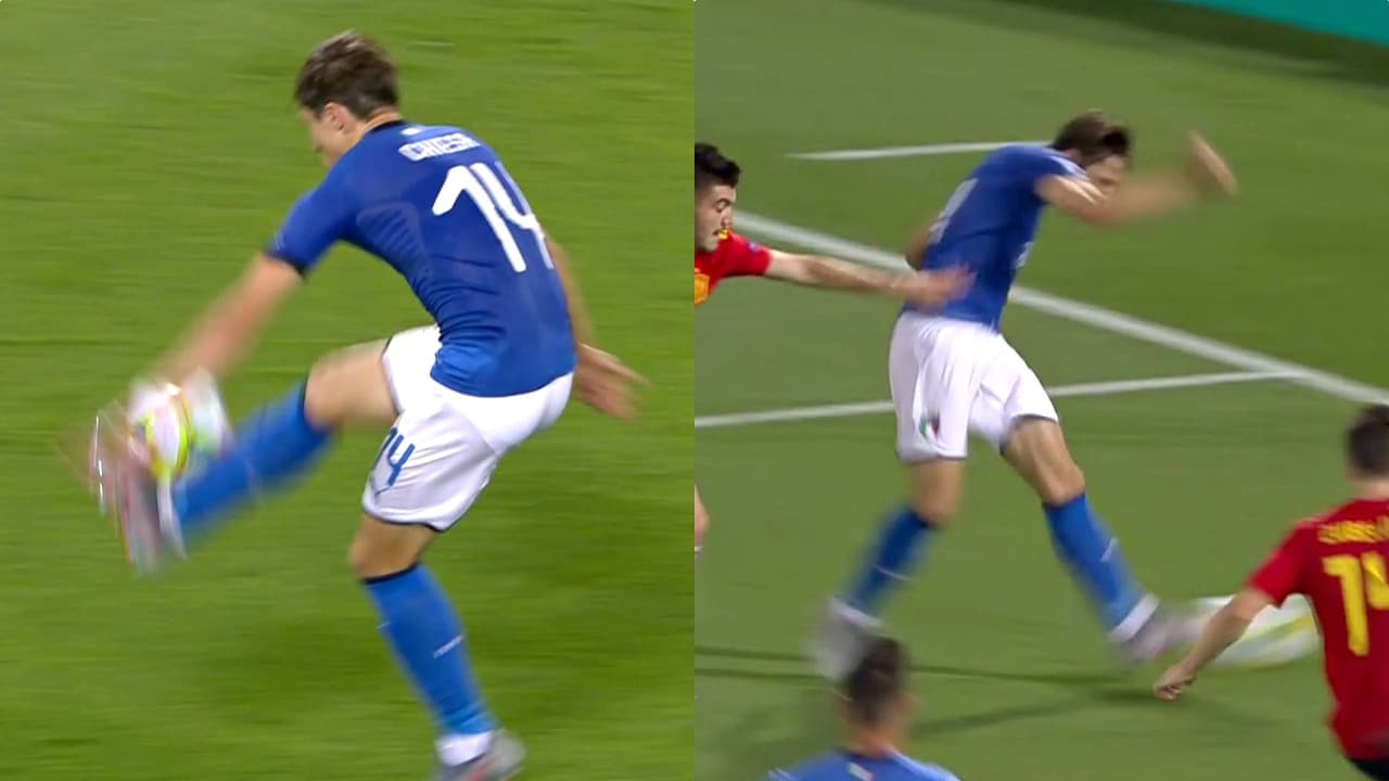Con un control a lo Zidane y una potente definición, Chiesa pone el 1-1 contra España