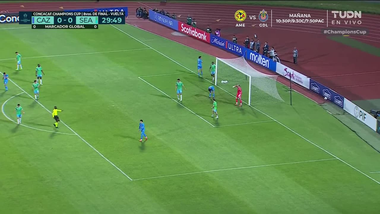 Ángel Sepúlveda (Cruz Azul) remata al travesaño| disparo de cabeza desde el centro del área. Asistencia de Mateusz Bogusz.