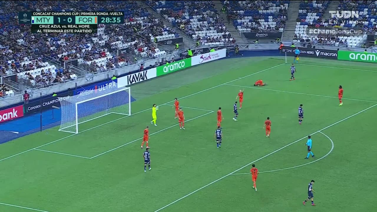 Sergio Canales (Monterrey) remata al poste derecho| zurdazo desde fuera del área.