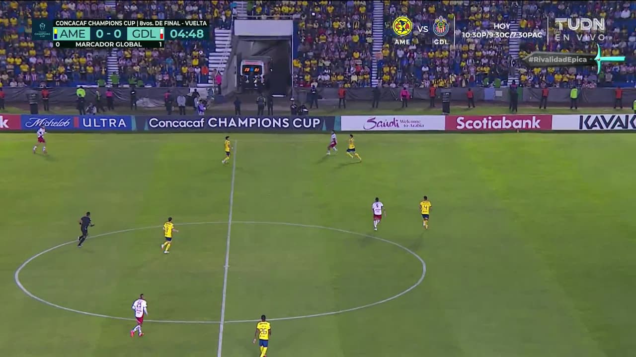 ¡Gol! América 1| Chivas 0. Brian Rodríguez (América) zurdazo desde el lado izquierdo dentro del área por el lado derecho de la portería. Asistencia de Diego Valdés.