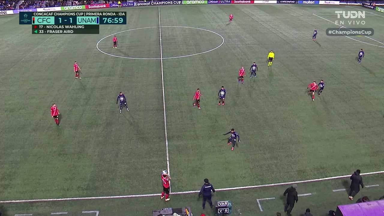 ¡Gol! Cavalry 2| Pumas UNAM 1. Tobias Warschewski (Cavalry) Disparo con la derecha desde el centro del área.