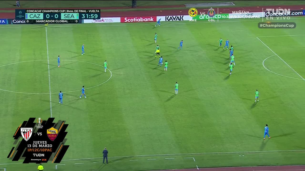 ¡Gol! Cruz Azul 1| Seattle Sounders FC 0. Carlos Rodríguez (Cruz Azul) disparo de cabeza desde el centro del área.