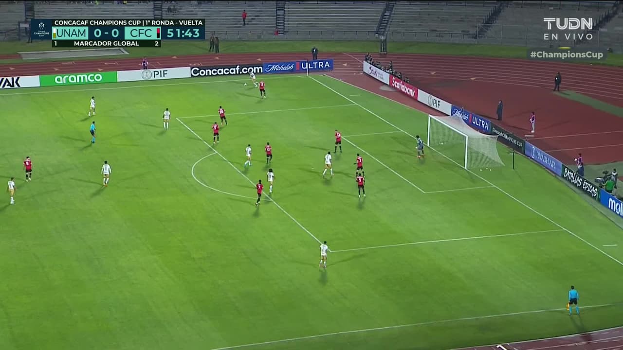 ¡Gol! Pumas UNAM 1| Cavalry 0. Guillermo Martínez (Pumas UNAM) disparo de cabeza desde el centro del área disparo rastrero| junto al palo izquierdo. Asistencia de Ignacio Pussetto con un centro al área.