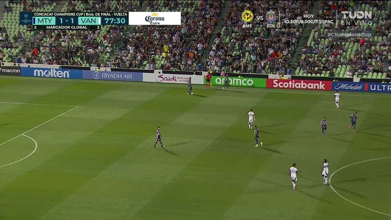 ¡Gol! Monterrey 1| Vancouver Whitecaps 2. Brian White (Vancouver Whitecaps) Disparo con la derecha desde el centro del área por el lado derecho de la portería. Asistencia de Andrés Cubas.