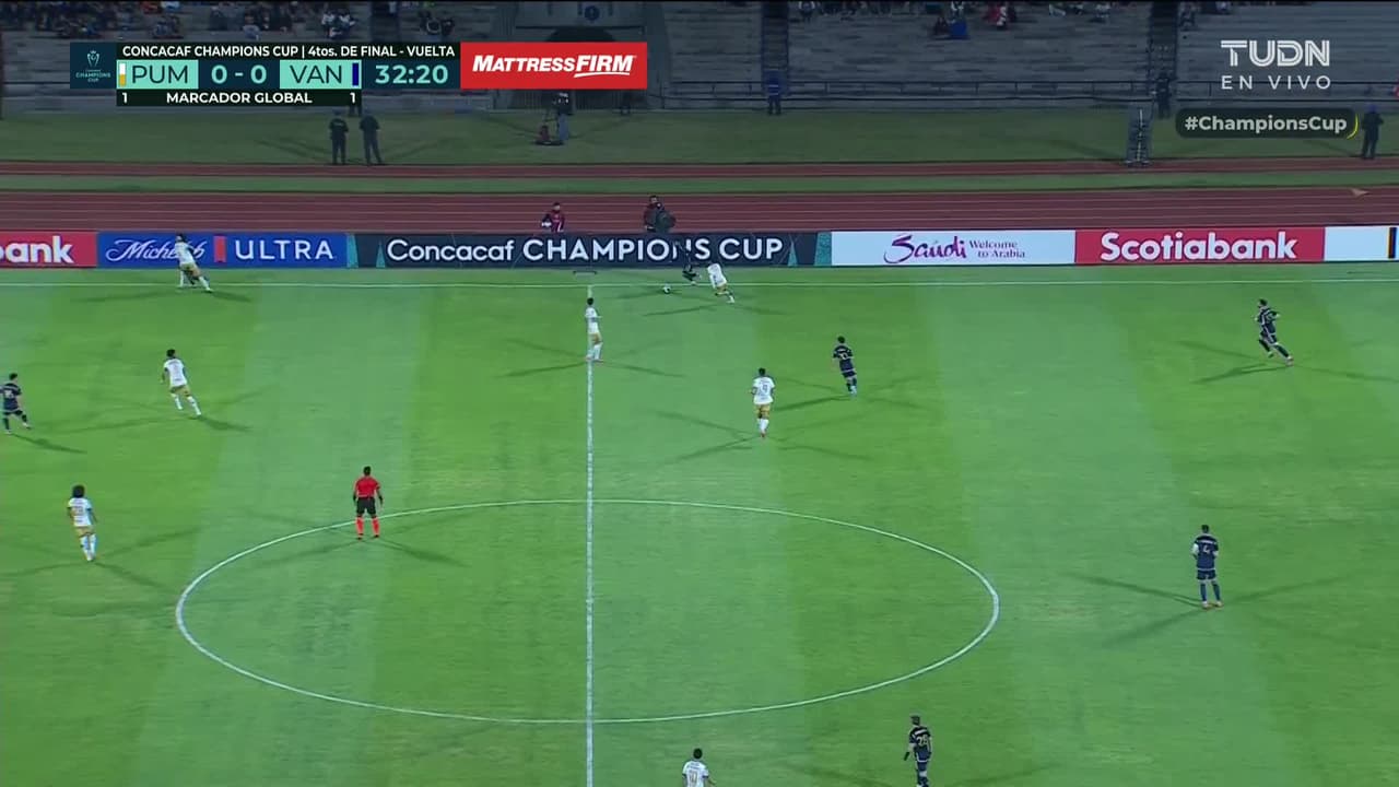 ¡Gol! Pumas UNAM 0| Vancouver Whitecaps 1. Sebastian Berhalter (Vancouver Whitecaps) Disparo con la derecha desde el centro del área.