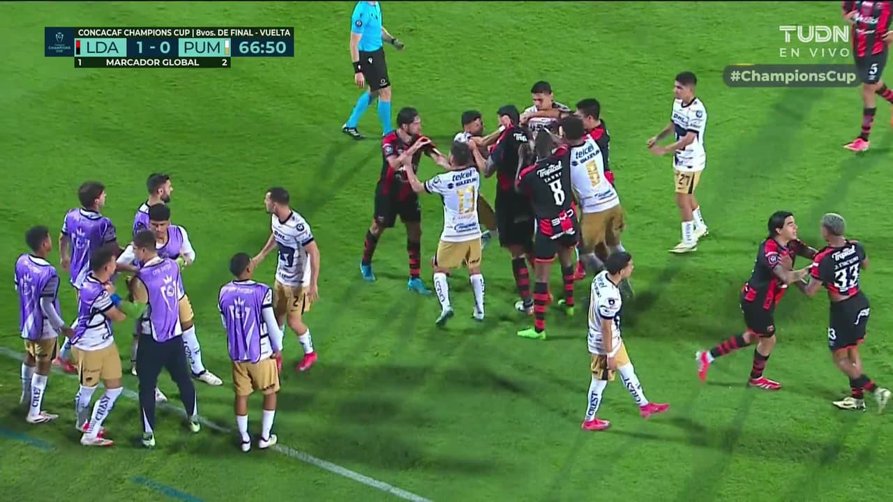 Jugadores de Alajuelense y Pumas se dicen de todo y protagonizan broncota.