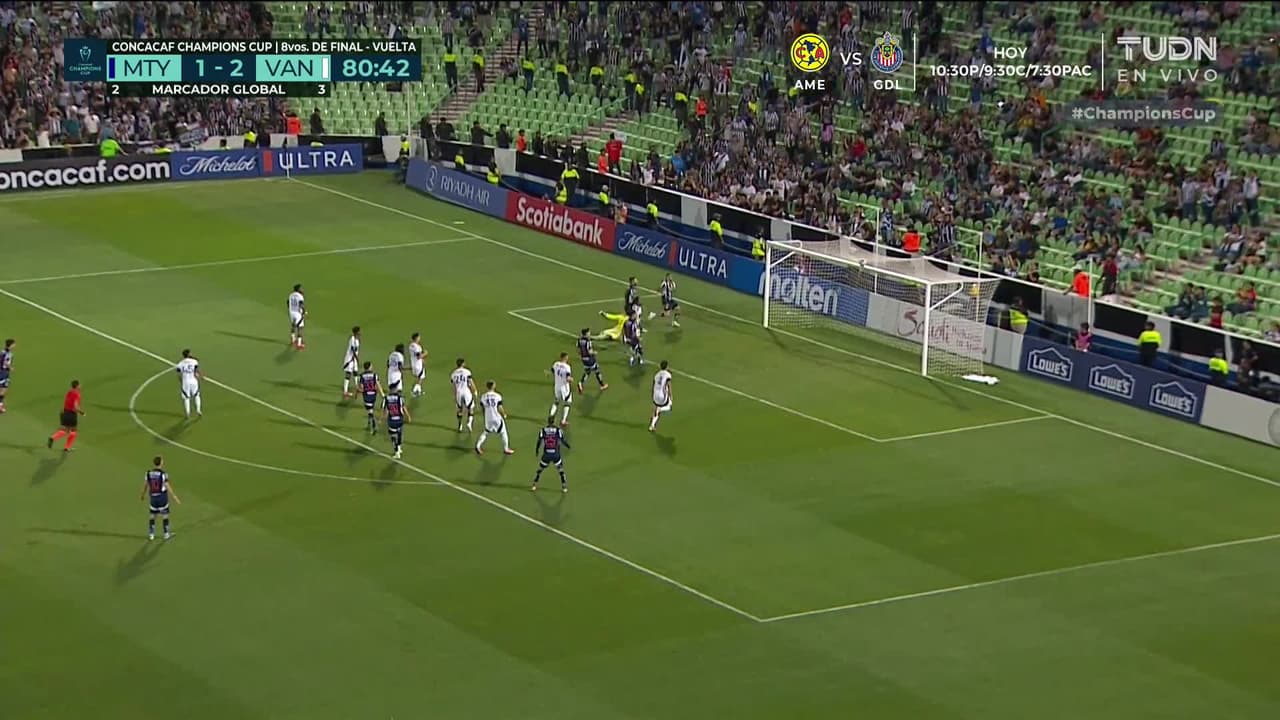 Rayados necesita dos goles para avanzar pero la fortuna no les sonríe y el remate de Berterame pega en el travesaño.