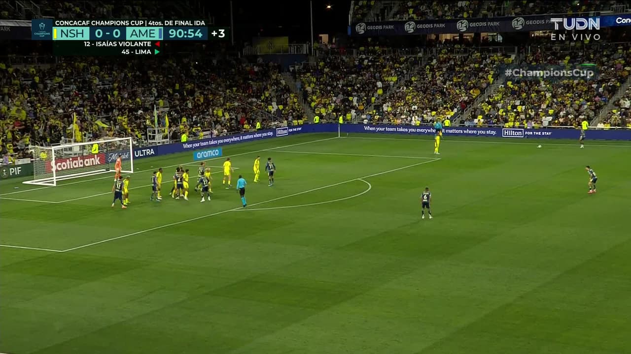 Tiro atajado. Aarón Mejía (América) Disparo con la derecha desde fuera del área.