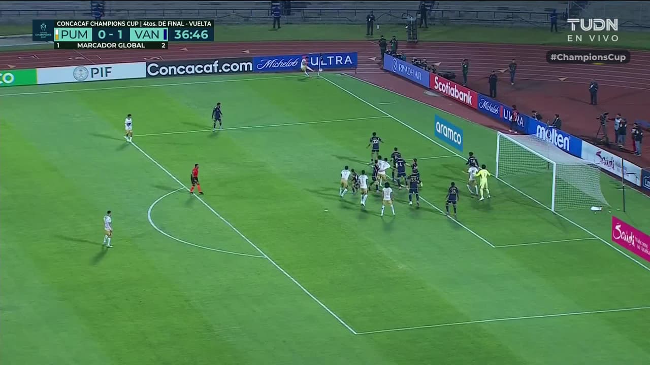 Tiro atajado. Adalberto Carrasquilla (Pumas UNAM) Disparo con la derecha desde el centro del área.