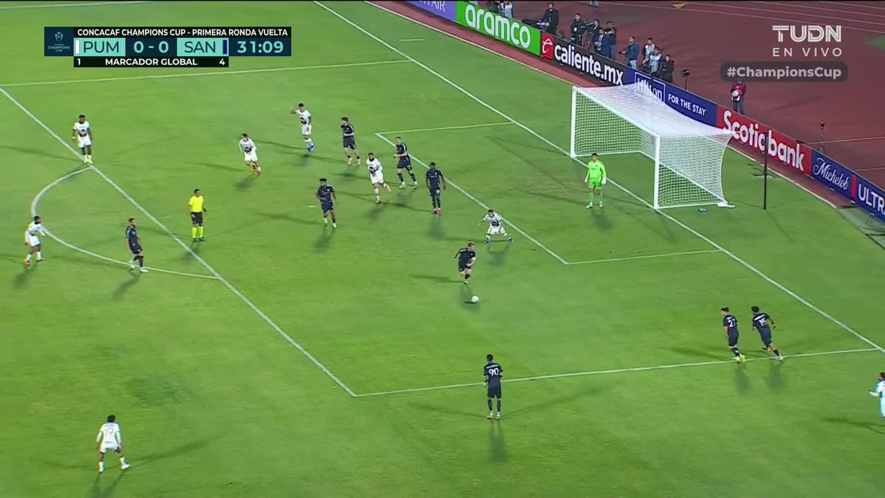 Tiro atajado. Anders Dreyer (San Diego) zurdazo desde fuera del área.