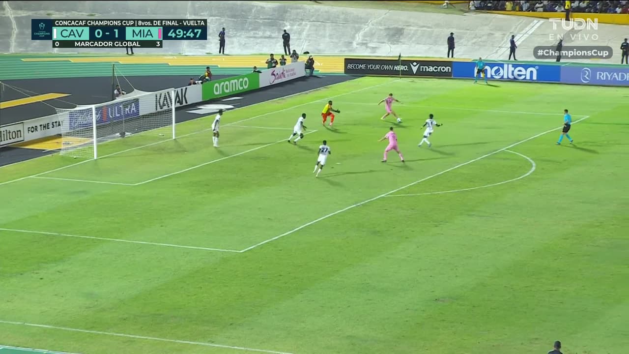 Tiro atajado por abajo a la izquierda. Benjamín Cremaschi (Inter Miami CF) zurdazo desde el lado derecho dentro del área.