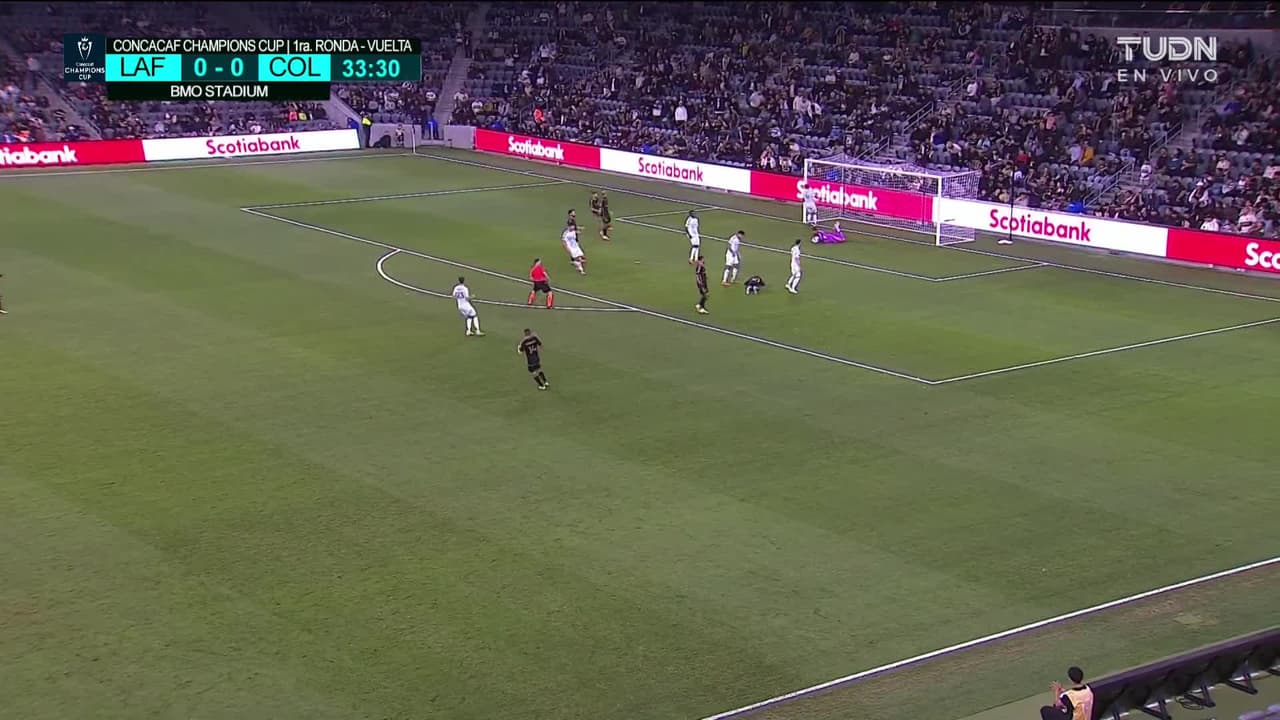 Tiro atajado raso al centro del arco. David Martínez (Los Angeles Football Club) zurdazo desde el centro del área. Asistencia de Dénis Bouanga.