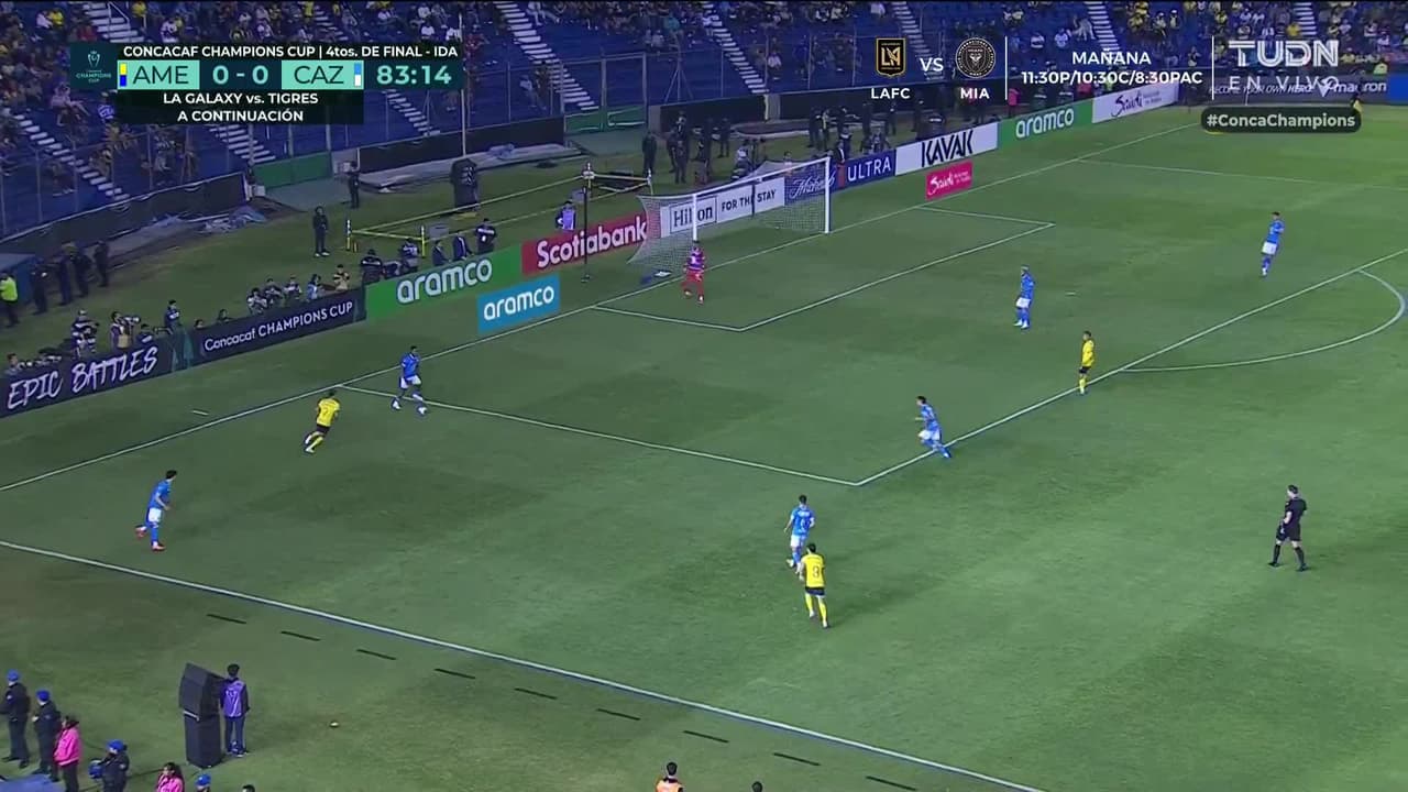 Tiro atajado raso al centro del arco. Diego Valdés (América) Disparo con la derecha desde fuera del área. Asistencia de Cristián Borja.
