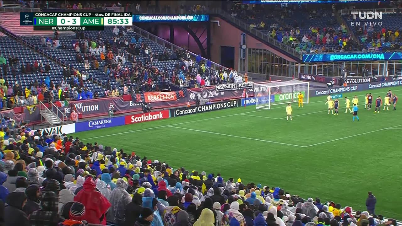 Tiro atajado Por arriba en el centro del arco. Ian Harkes (New England Revolution) disparo de cabeza desde el centro del área. Asistencia de Tomás Chancalay con un centro al área.