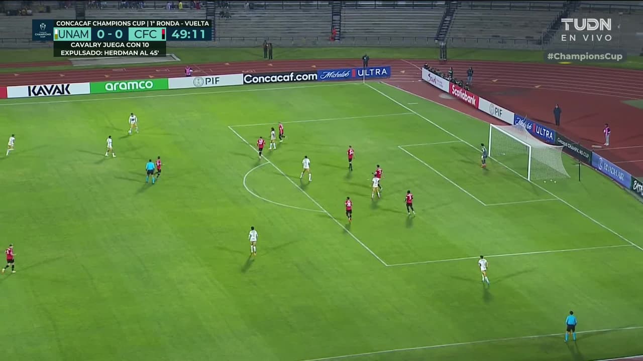 Tiro atajado. Ignacio Pussetto (Pumas UNAM) Disparo con la derecha desde fuera del área.