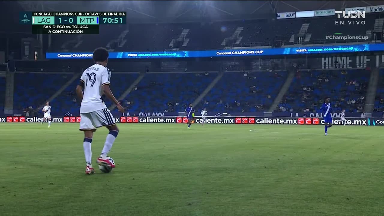 Tiro atajado raso al centro del arco. João Klauss (LA Galaxy) Disparo con la derecha desde el centro del área. Asistencia de Mauricio Cuevas.