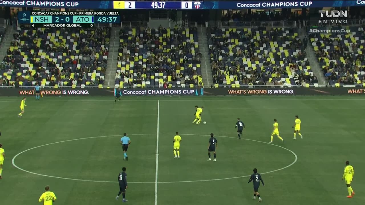 Tiro atajado. Jordan Knight (Nashville SC) zurdazo desde el centro del área.