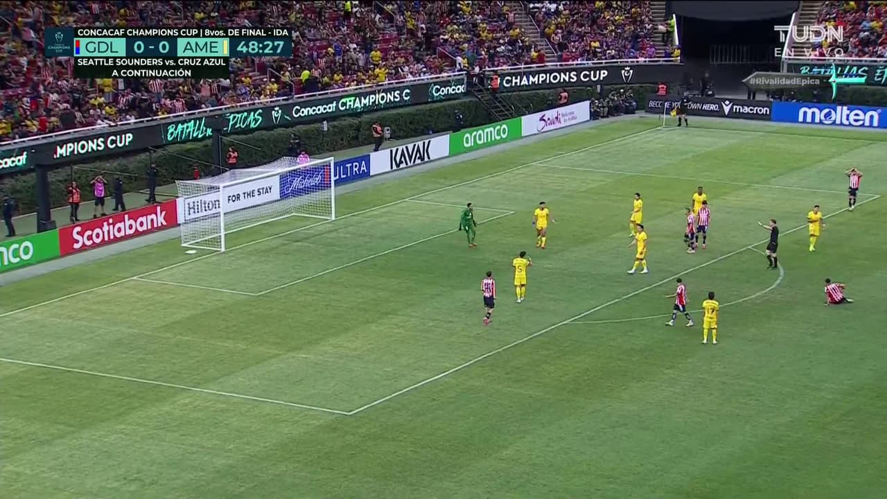 Tiro atajado Por arriba en el centro del arco. José Castillo (Chivas ) Disparo con la derecha desde el centro del área. Asistencia de Alan Pulido.