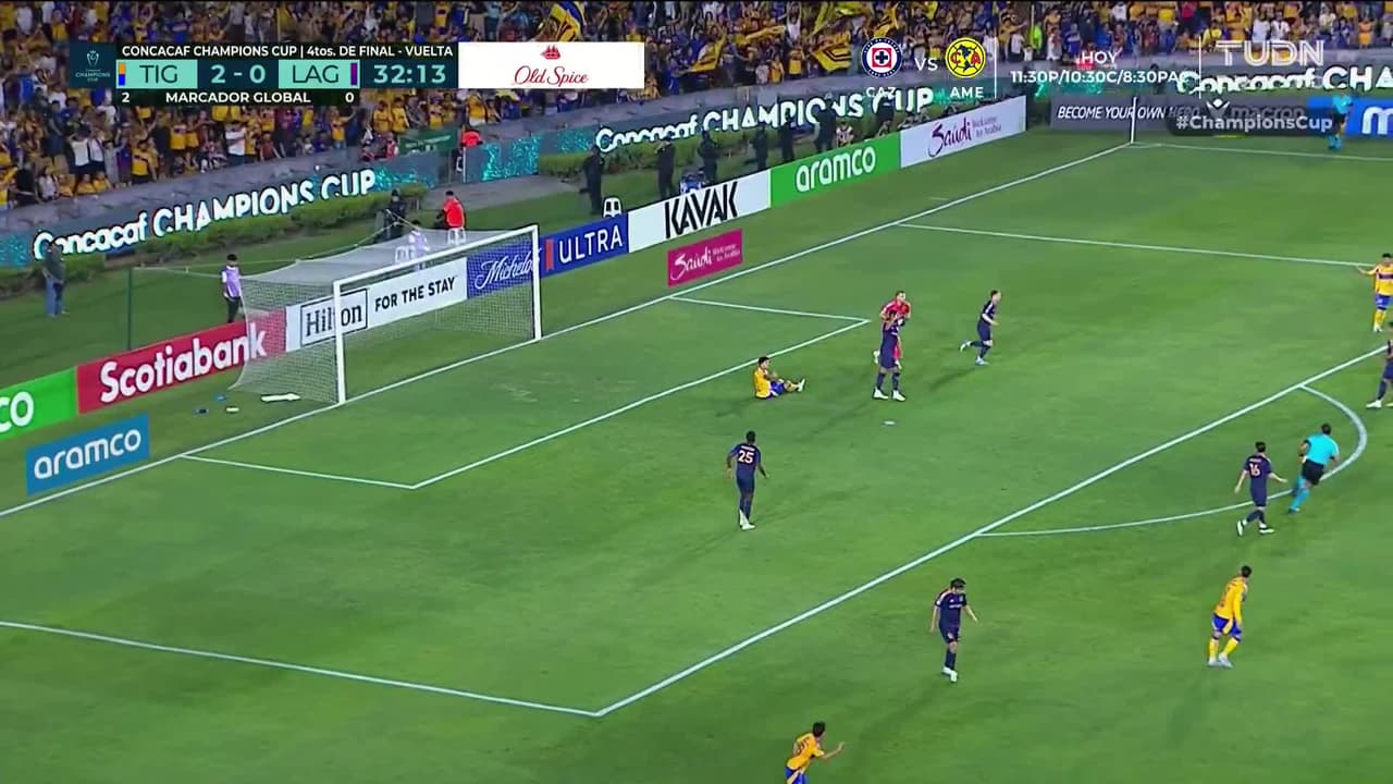 Tiro atajado raso al centro del arco. Juan Brunetta (Tigres) zurdazo desde fuera del área. Asistencia de Rafael Carioca.