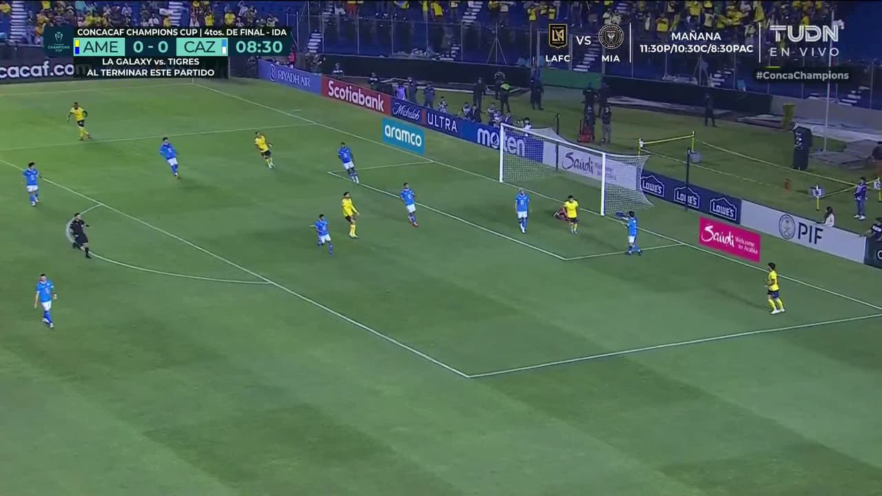Tiro atajado junto al lado derecho de la portería. Kevin Álvarez (América) Disparo con la derecha sin ángulo desde la derecha. Asistencia de Brian Rodríguez con un centro al área.