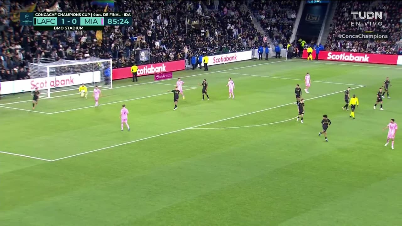 Tiro atajado. Lionel Messi (Inter Miami CF) zurdazo desde fuera del área.