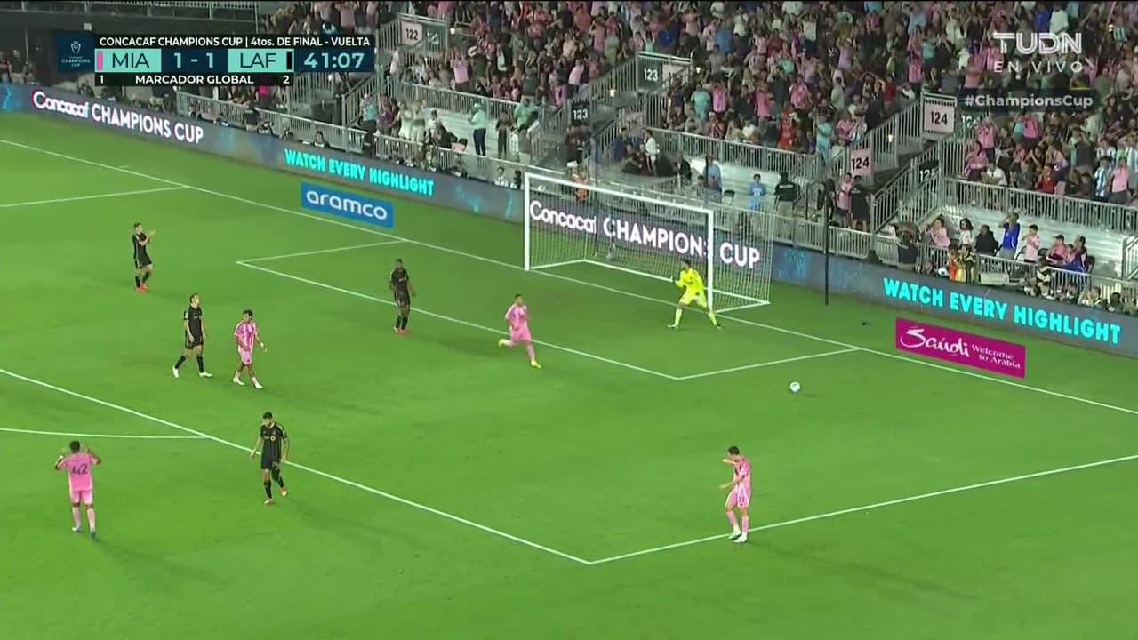 Tiro atajado junto al lado derecho de la portería. Lionel Messi (Inter Miami CF) zurdazo desde fuera del área. Asistencia de Jordi Alba.