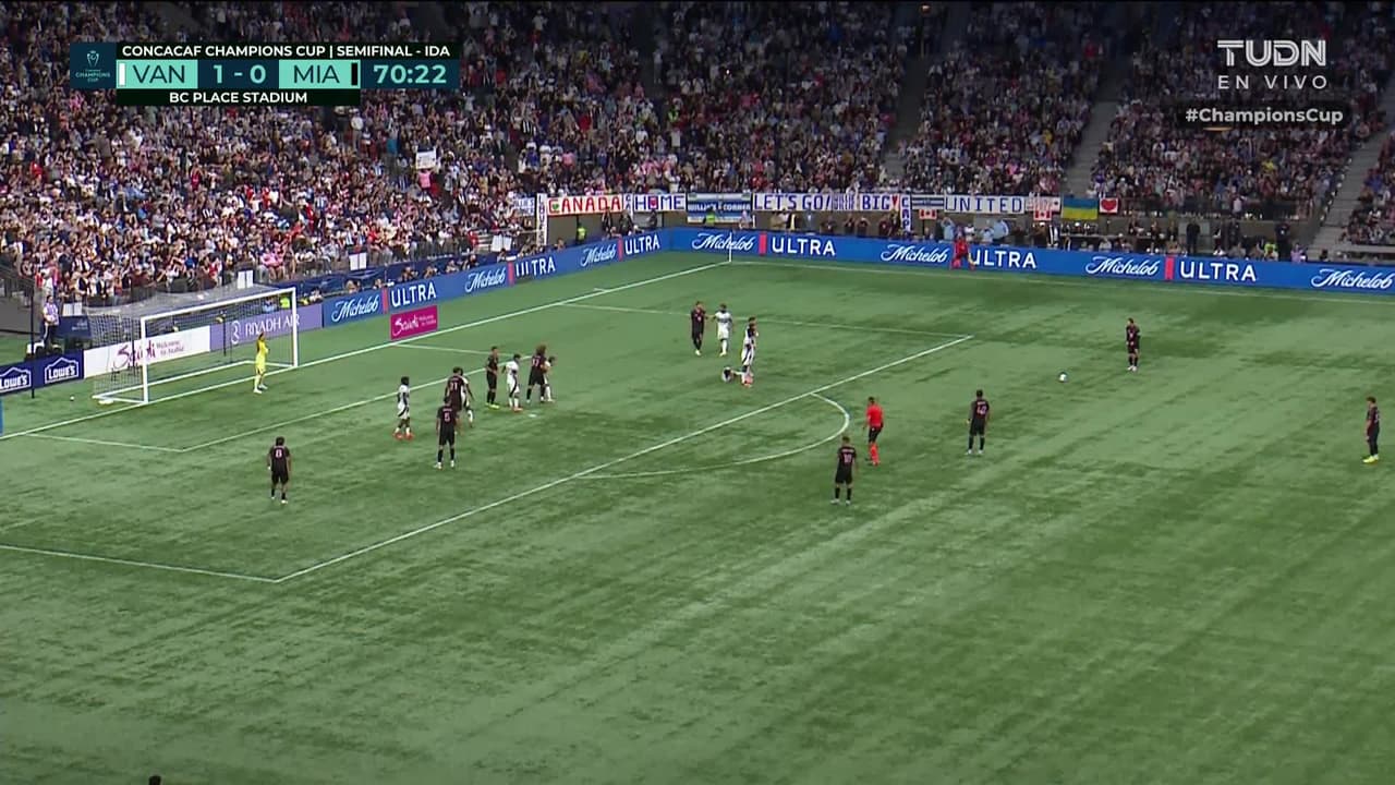 Tiro atajado. Lionel Messi (Inter Miami CF) zurdazo desde fuera del área.